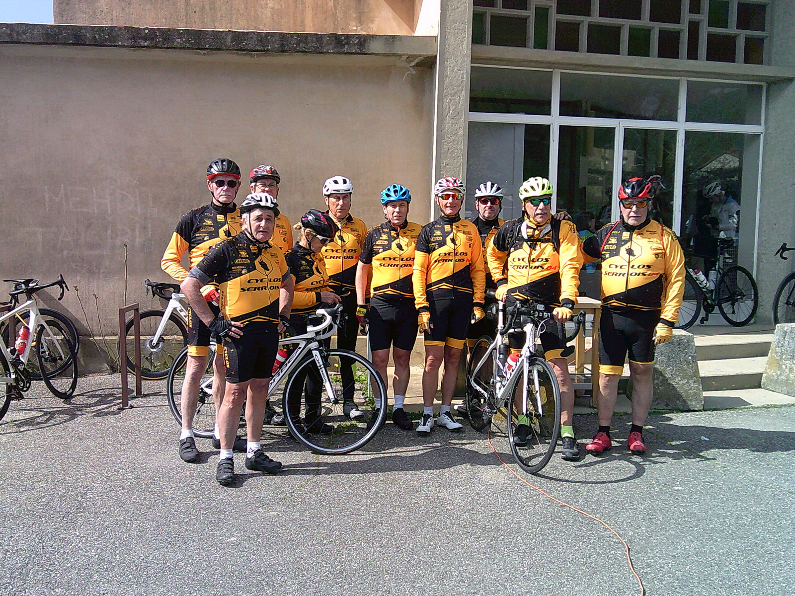 L'ensemble des participants du club un peu fatigué à part Bruno car en finalité plus de 850m de dénivelé sur le 62km et 1200m sur le 80km, première fois de la saison pour la plupart , Gisèle avec sa volonté est bien passée sur le parcours difficile du 62km et moi grâce au vélo électrique que je prenais pour la première fois je me suis retrouvé dans les bosses devant le groupe des 7 ce qui ne m'était pas arrivé depuis longtemps !!!
