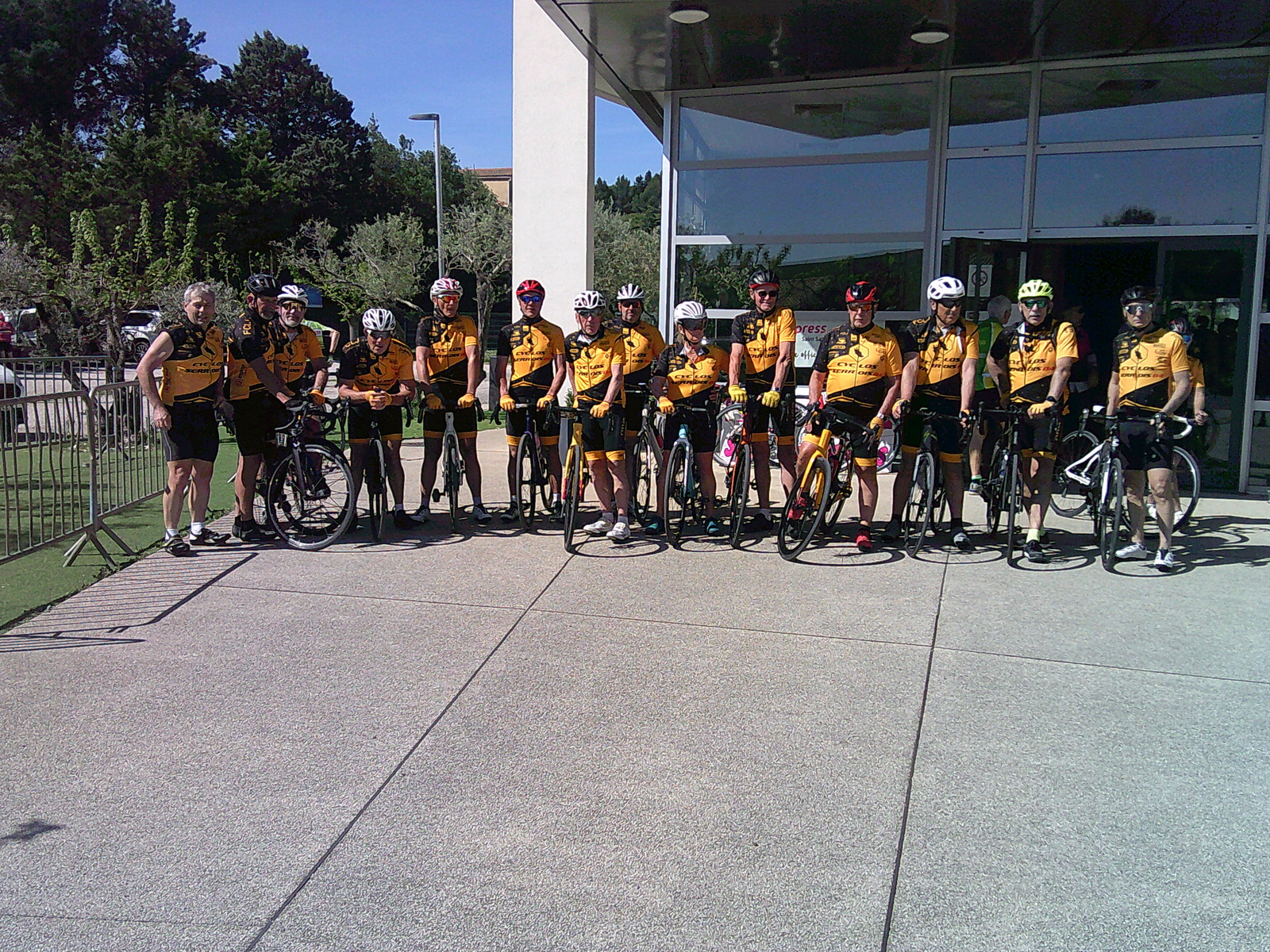 Départ de Carpentras en vélo pour la plupart avec une petite fraîcheur sur les premiers km qui nous mènent à St Saturnin, inscriptions, café puis départ pour le circuit de 75km au nord du Luberon en direction de Lumières , seul Bruno et Yvan ont fait la boucle du 105km par Lacoste ,Bonnieux ,Roussillon et passage de nouveau au ravito de Lumières.
