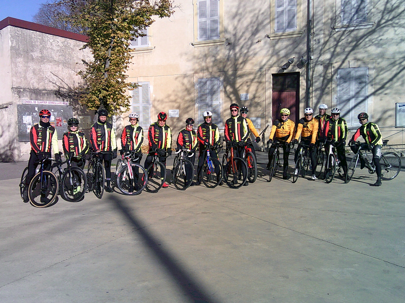 Pour ce samedi belle journée pour une fois pas de vent et température agréable pour la saison, surprise 15 présents au départ toujours Christine qui veut assurer sa 2ème place au classement - Christian - Pascal - Philippe - Jean Pierre - Laurent - François J - Jean Loup - Virginie - Michel - Yvan - Fred - Gi - Dom et moi pour un circuit de 70km vers Sérignan ,La Garde Paréol.
